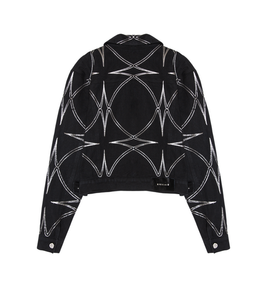 Metalic Four Leaf Clover Black Denim Jacket BLACK