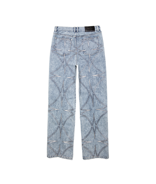 Multi Panel Dart Curved Denim Pants DEEP BLUE