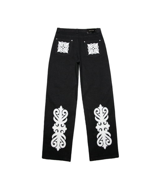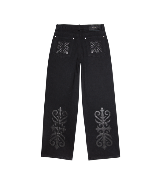 Symbol Stitch Low Rise Flare Fit Denim Pants BLACK