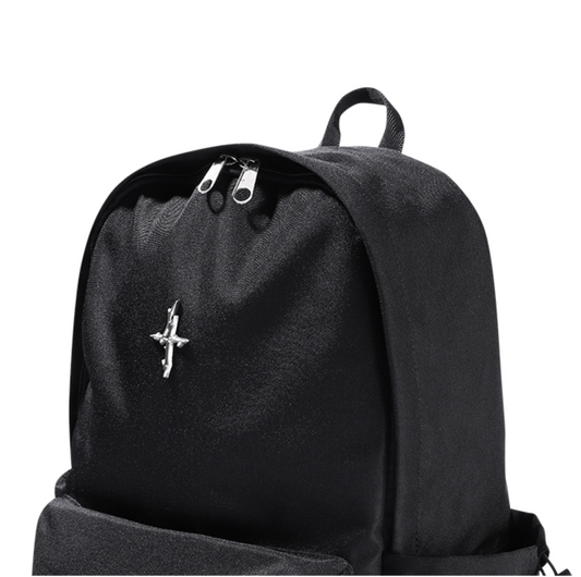 4 Symbol Pendant Patch String Pocket Backpack BLACK