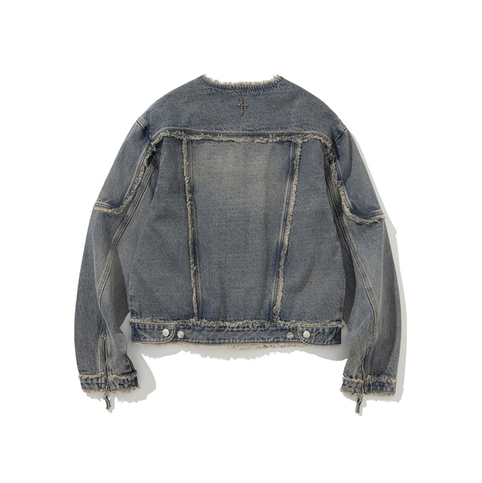 Cut Off Non-Collar Denim Jacket DEEP BLUE