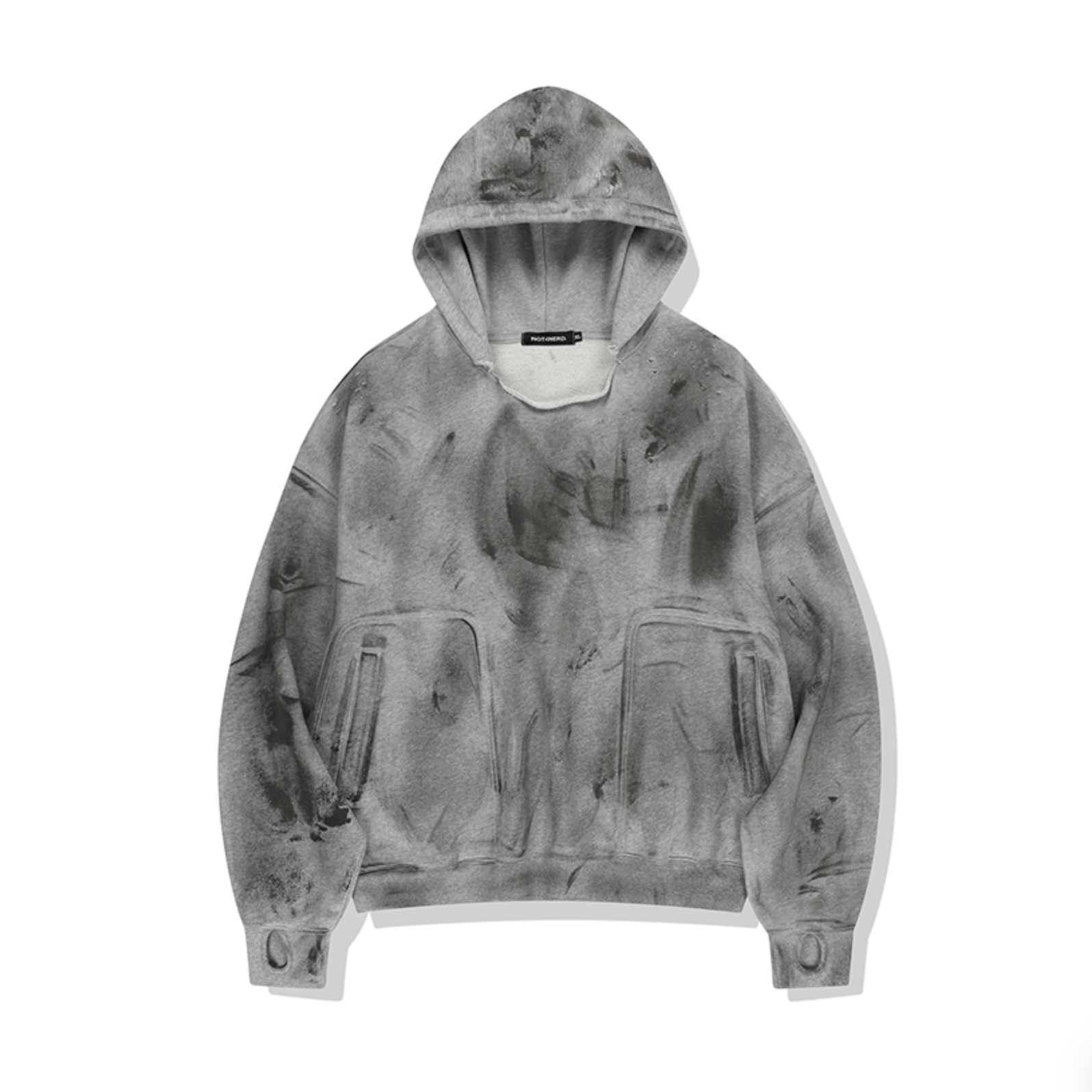 Damage Washed Patch Pullover Hood GREY