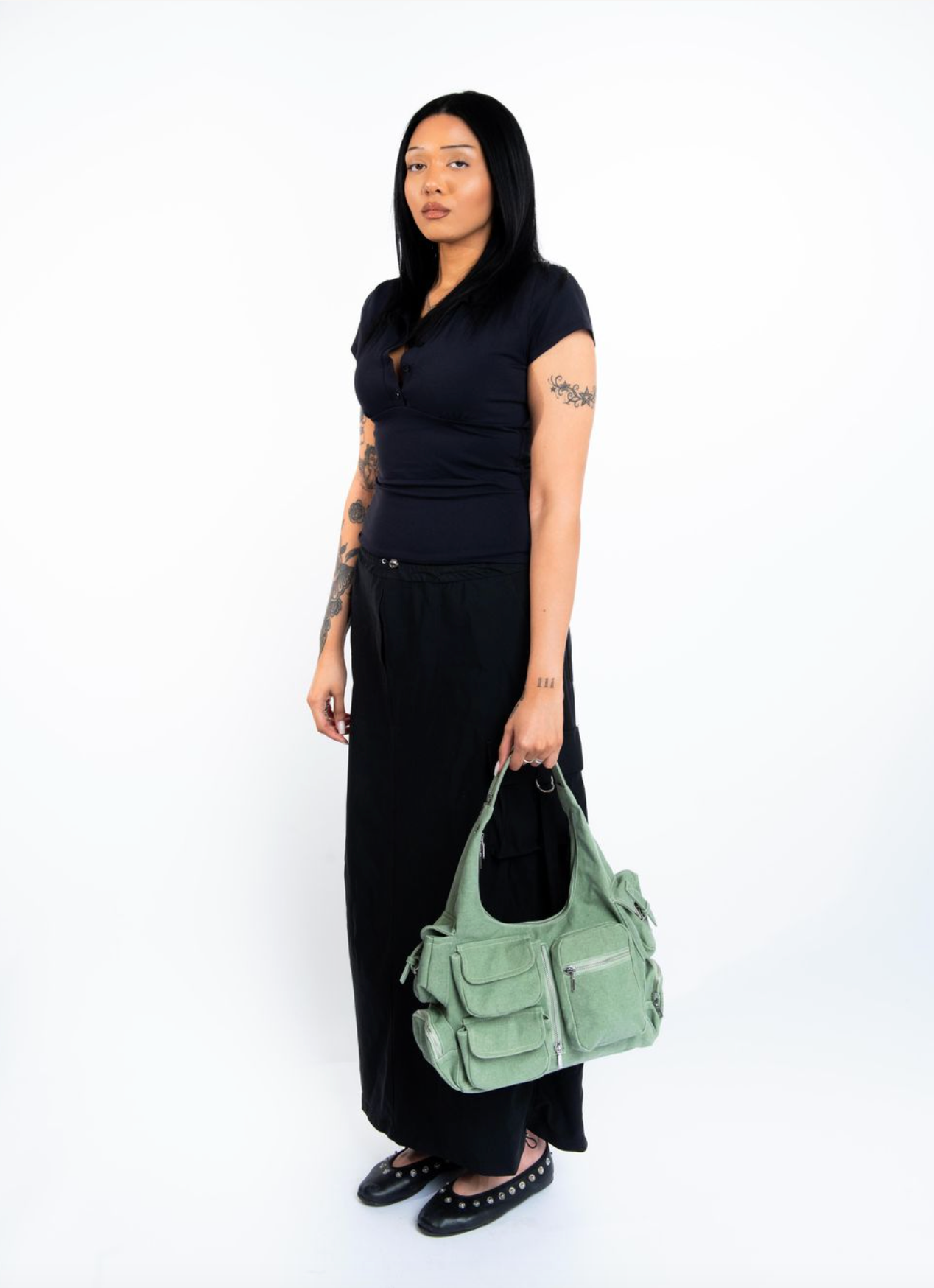 The Nomad bag is an over the shoulder option in our cargo collection that features a curved silhouette and comfortable shoulder strap. Front, back and side pockets provide ample space to fit all of your essential items. It is a perfect on-the-go bag for the nomad in your life.