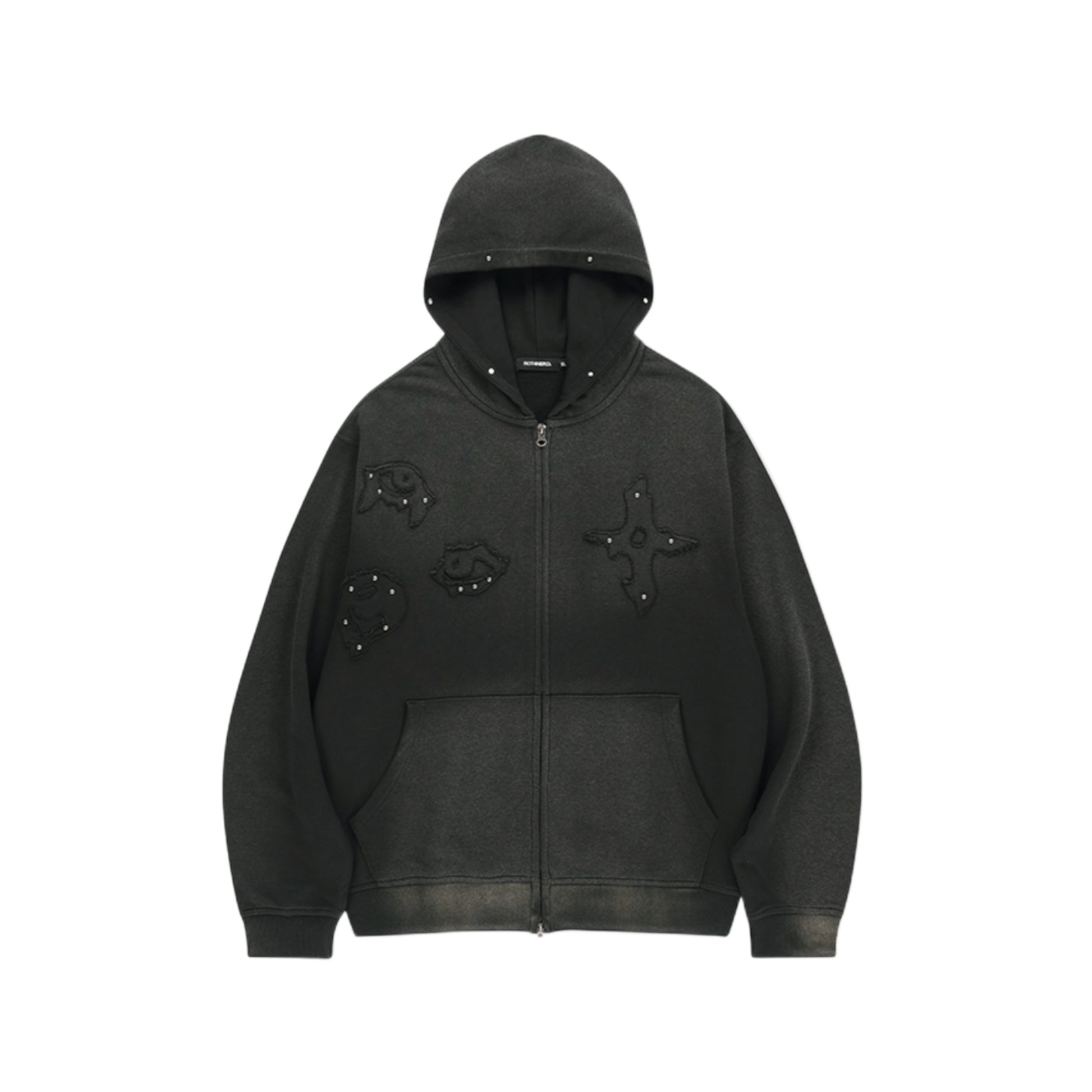 Stud Chasm Eyes Salt Washed Hood Zip Up BLACK