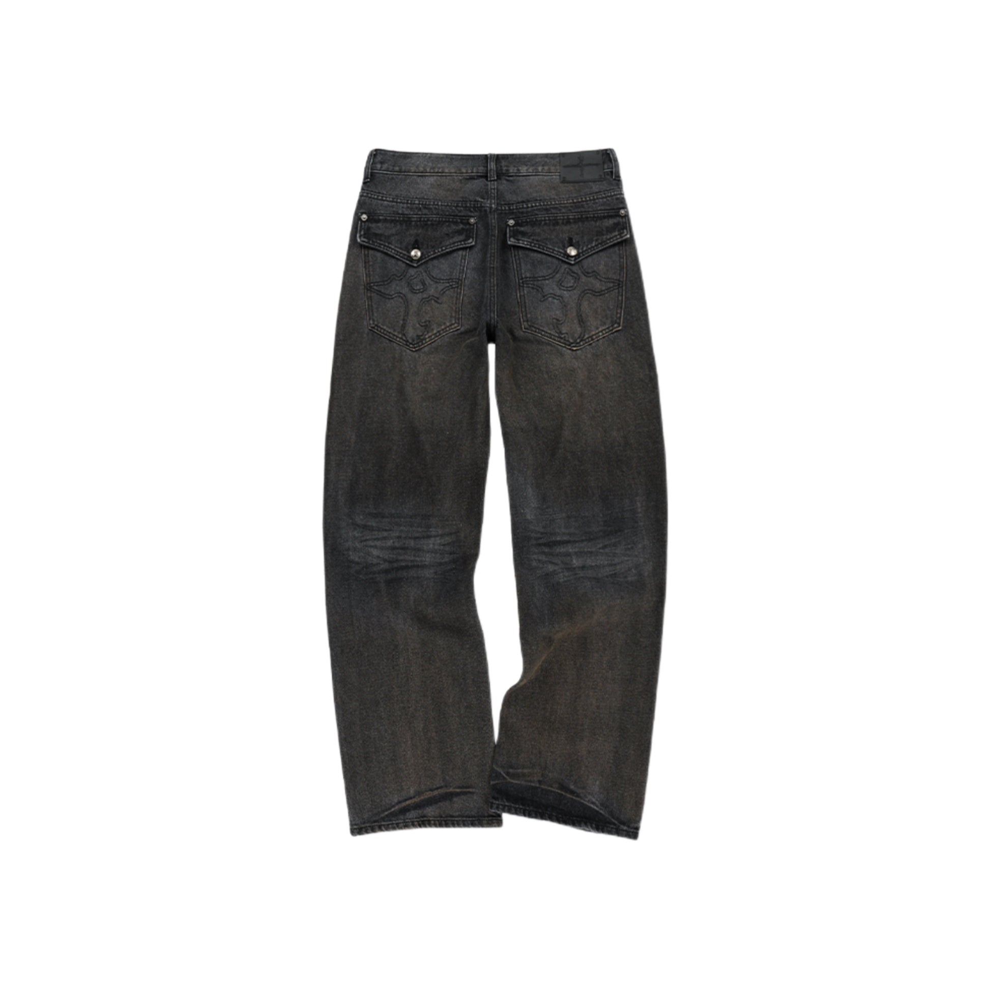 Symbol Stitch Low Rise Flare Fit Denim Pants BLACK