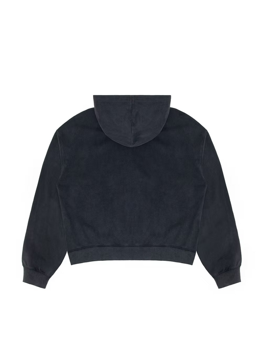 Spray Flower Zip-Up Hoodie BLACK